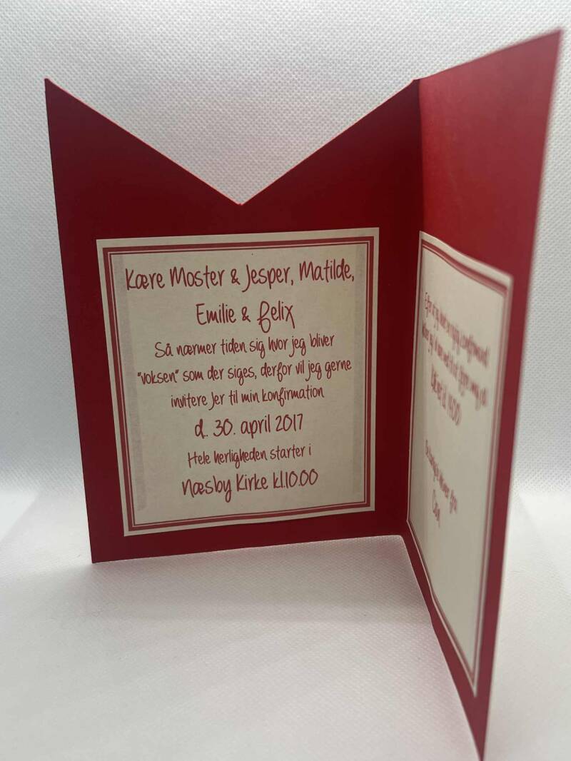 Invitationen blev i sin tid målt ud, klippet og bukket i hånden.