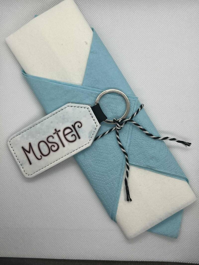 Nøgleringene er nemlig købt blanke og så har vi selv sublimeret navne på.